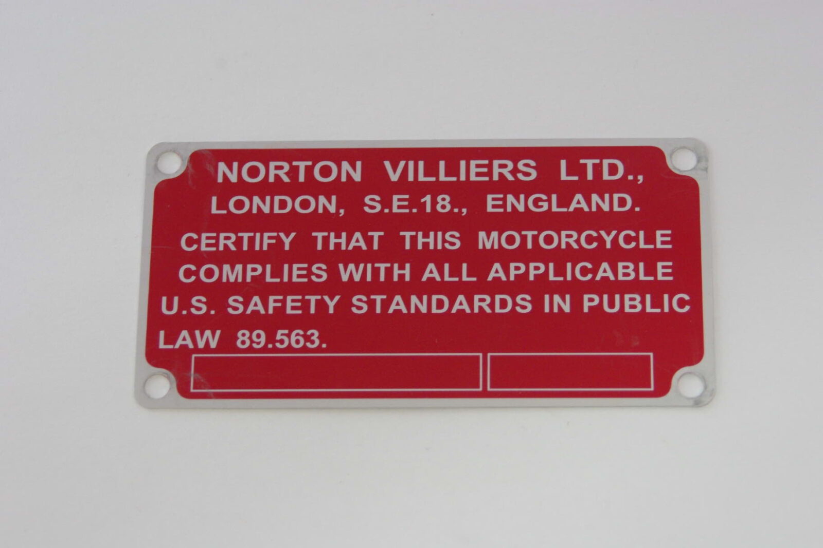 PLATE – ID FRAME PLATE – 1969 TYPE – SEE NOTES RE 4 RIVITS REQUIRED