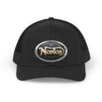 A vintage-inspired trucker hat that channels old-school motorcycle club vibes with modern comfort. The structured six-panel crown and mid-profile silhouette hold the classic oval patch prominently on the front, while the breathable mesh back keeps you cool on long rides or hot days in town. The slightly curved Permacurv® visor holds its shape ride after ride, and the snapback closure lets you dial in a comfortable fit. Wear it with a worn leather jacket, faded jeans, and boots to finish a rugged, timeless look—or toss it in your bag for easy style on road trips and weekend hangs.