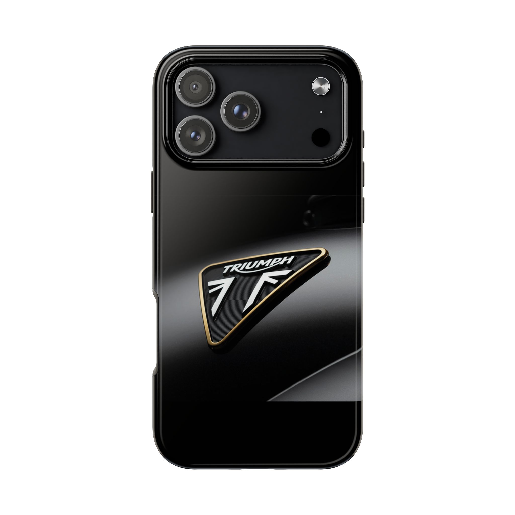 A sleek, high-impact phone case that carries a quiet confidence. This case wraps your phone in a glossy black shell with a subtle metallic emblem at its center — a look that reads like a favorite bike badge or a handcrafted tool left to patina. It feels solid in the hand but stays slim enough to slide into jacket pockets. The interior rubber liner cushions against drops while the lay-flat bezel keeps your screen off rough surfaces. UV protection preserves the deep finish, so the case keeps its smooth, reflective look even after sunlit rides or long commutes. For someone who cares about function and style, this case blends everyday toughness with an intentional, engineered aesthetic.