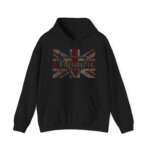 This mid-weight hoodie brings a quiet, refined edge to everyday wear. The front wears a weathered Union Jack and vintage Triumph emblem—faded, scratched, and full of road-worn character—while the back shows a close-up, glossy Triumph badge on a dark metallic surface. It feels like the jacket you reach for after a long ride: warm, broken-in, and a little nostalgic. The roomy kangaroo pocket keeps hands warm. Double-lined hood and color-matched drawcord add subtle polish. Wear it on cool mornings, at bike meets, or when you want a low-key nod to classic British motor culture.